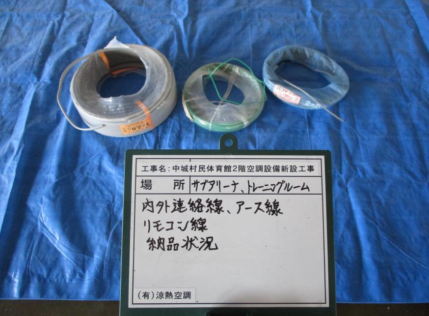 内外連絡線(VVF2.0㎜-3C) アース線(IV 1.6㎜) リモコン線(VCTF0.5㎟-2C)納品状況