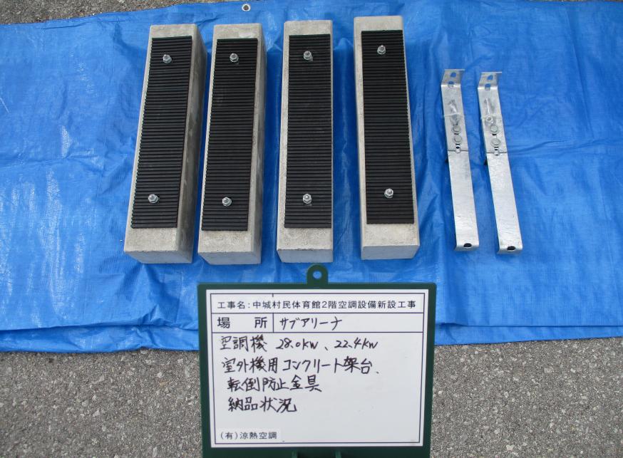 コンクリート架台 室外機転倒防止金具 納品状況