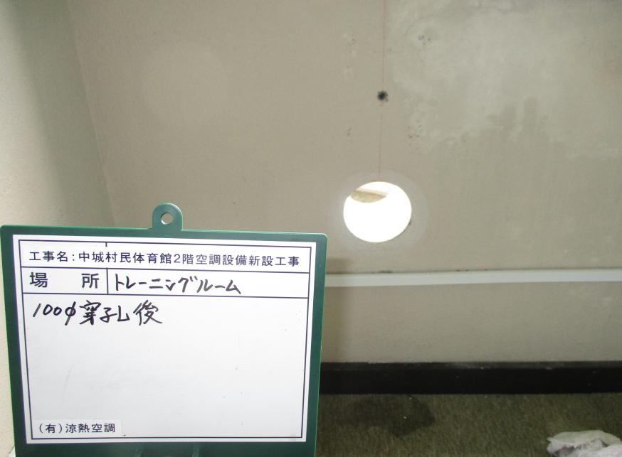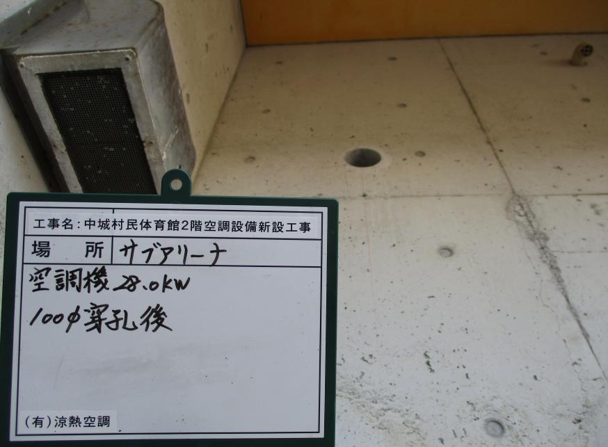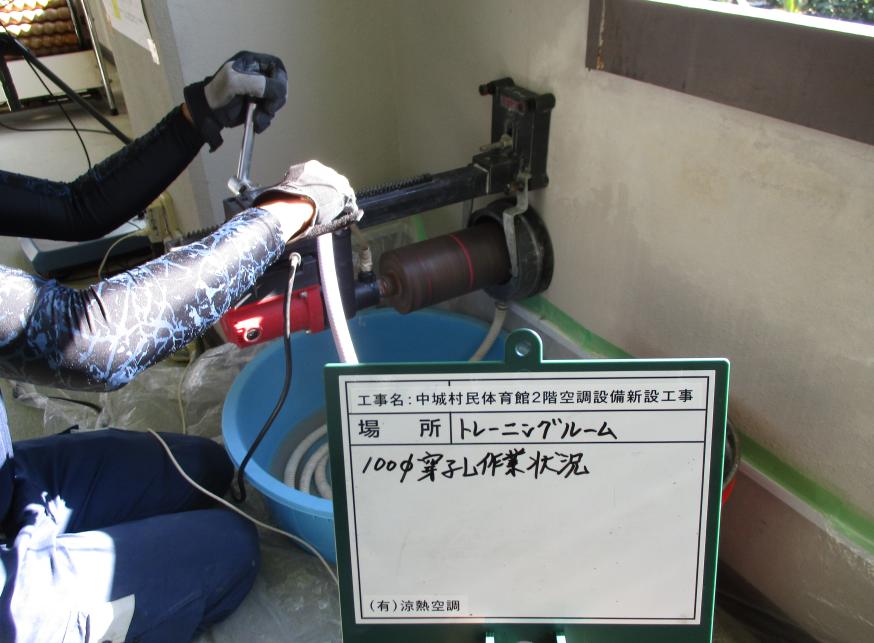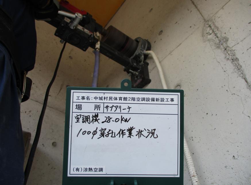 冷房能力28.0kw 100Φ穿孔作業状況