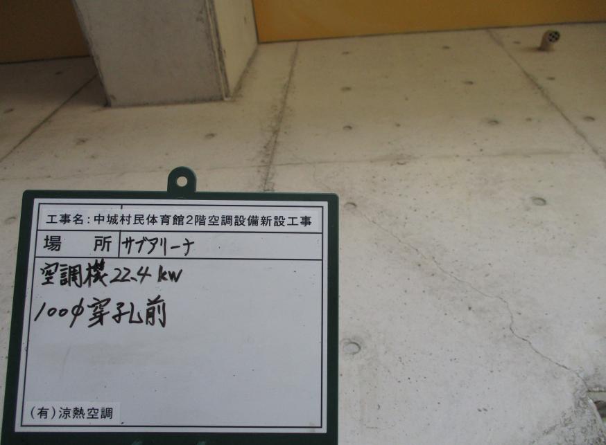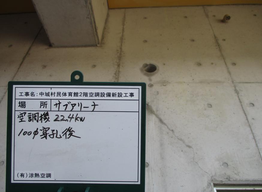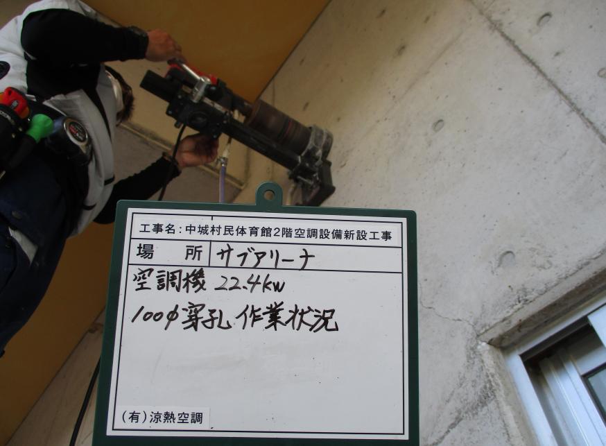 冷房能力22.4kw 100Φ穿孔作業状況