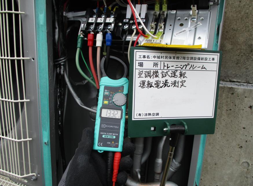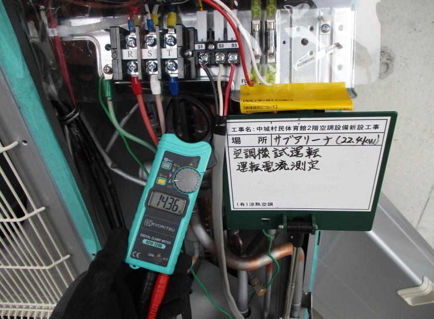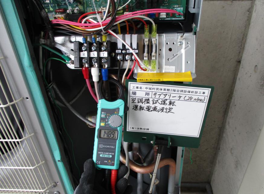 冷房能力28.0kw 試運転調整 運転電流測定状況
