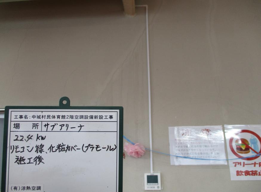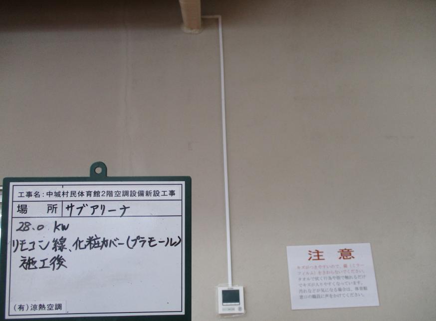 冷房能力28.0kw リモコン線 化粧カバー(プラモール) 施工後