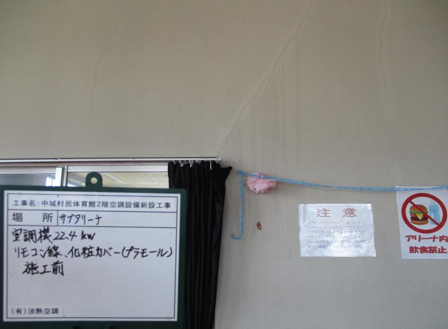 冷房能力22.4kw リモコン線 化粧カバー(プラモール) 施工前