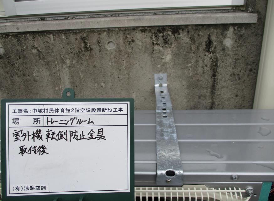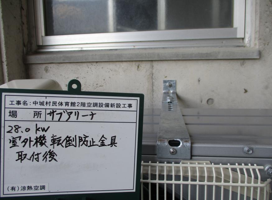 冷房能力28.0kw 室外機転倒防止金具 取付後