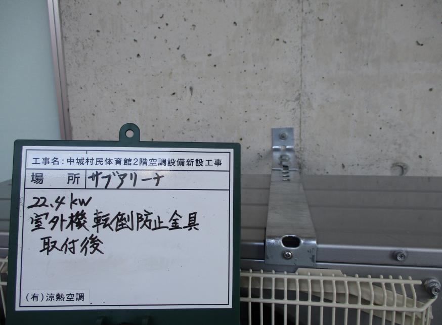 冷房能力22.4kw 室外機転倒防止金具 取付後