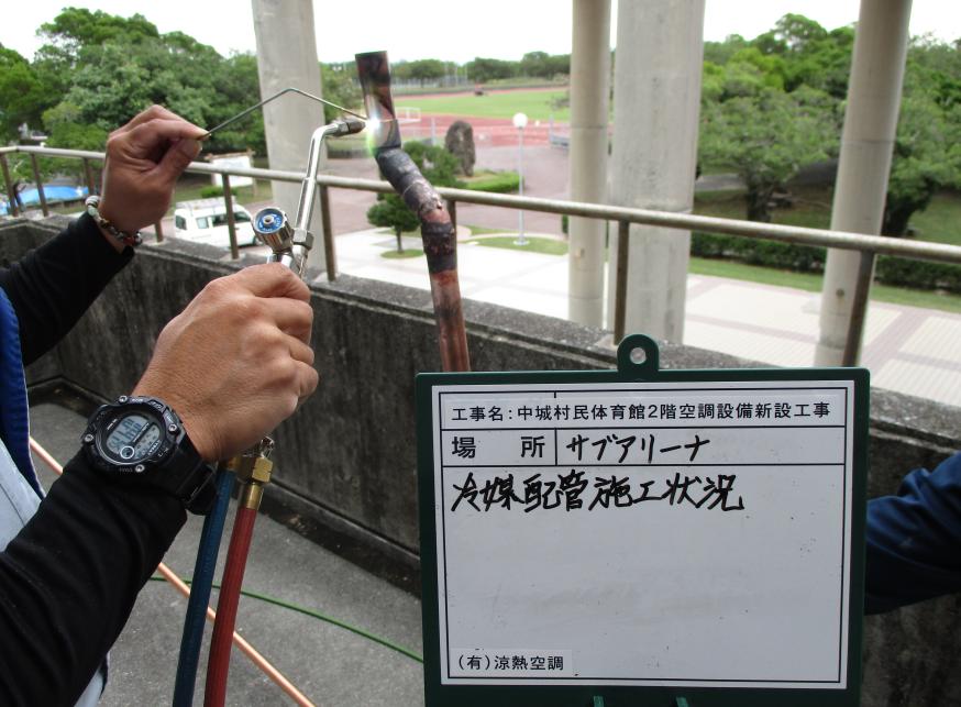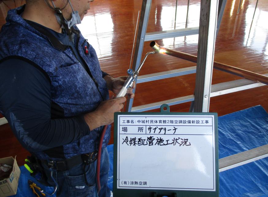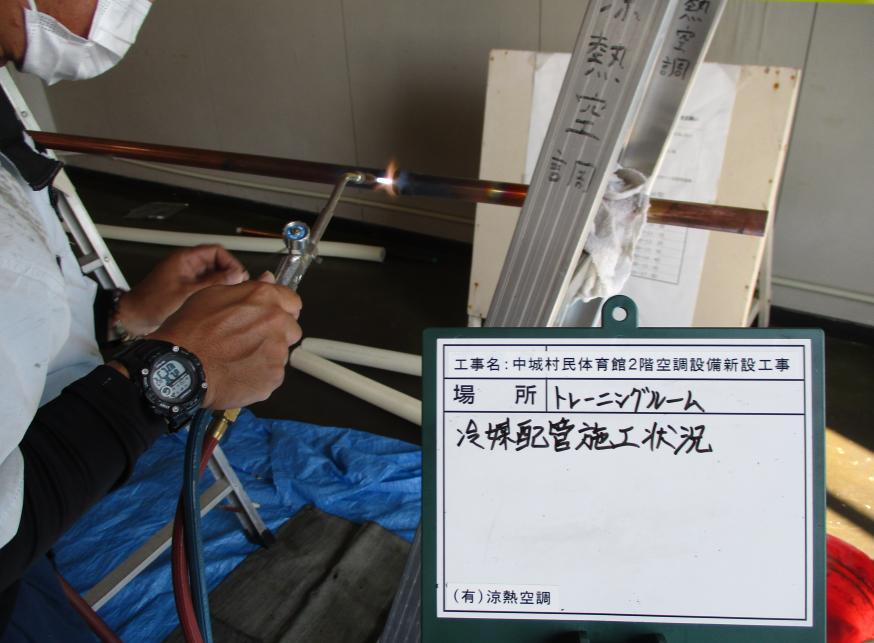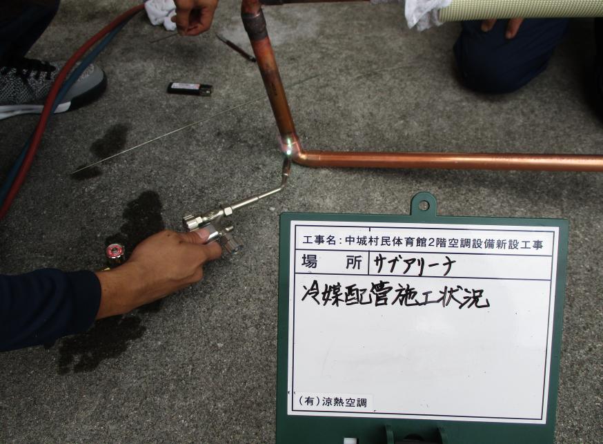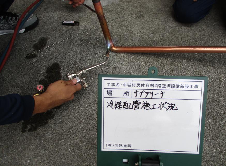 冷房能力22.4kw 冷媒配管施工状況 (ガス溶接作業状況)