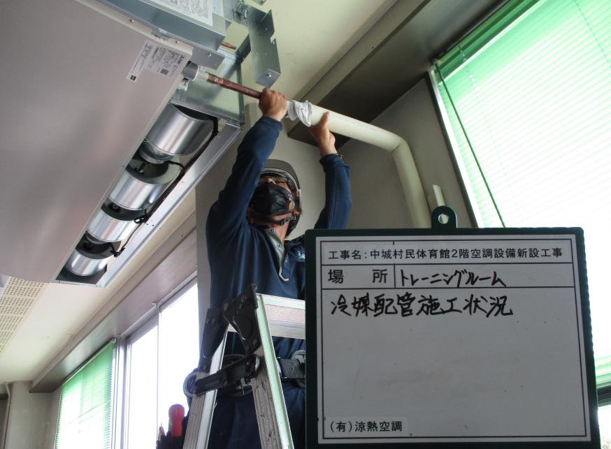冷房能力22.4kw 冷媒配管 施工状況