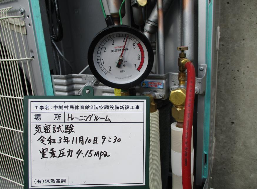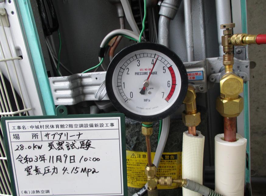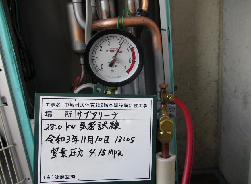 冷房能力28.0kw 気密試験 令和3年11月10日 13:05 終了 窒素圧力 4.15Mpa