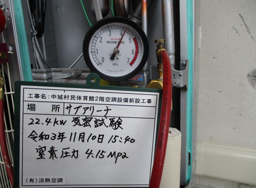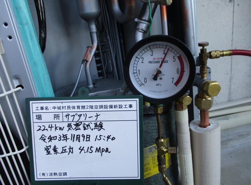 冷房能力22.4kw 気密試験 令和3年11月10日 15:40 終了 窒素圧力 4.15Mpa