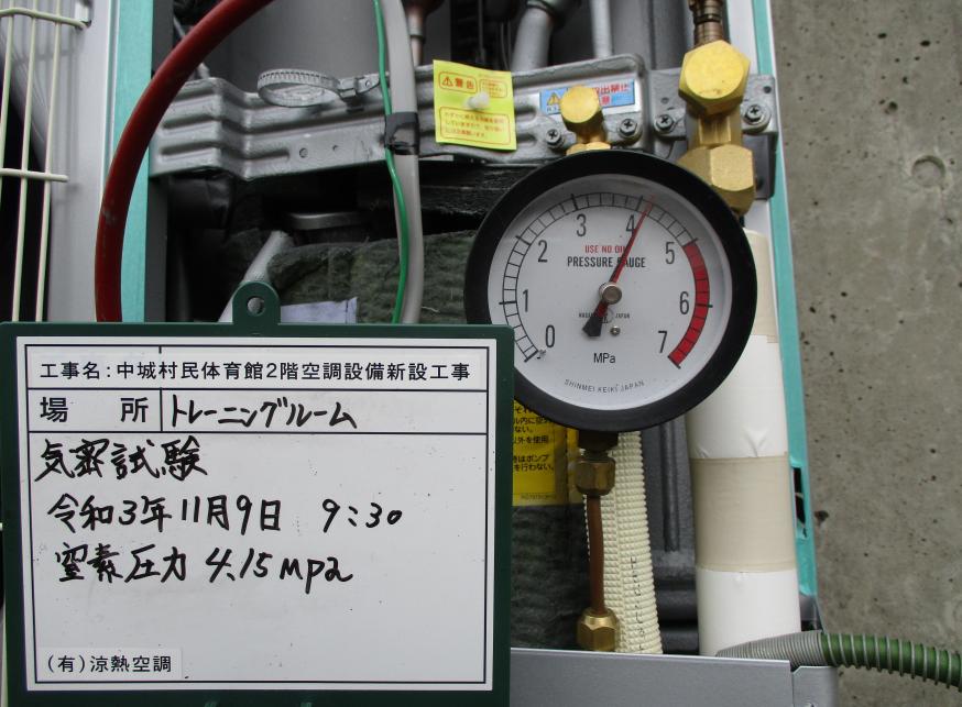 冷房能力22.4kw 気密試験 令和3年11月10日 9:30 終了 窒素圧力 4.15Mpa