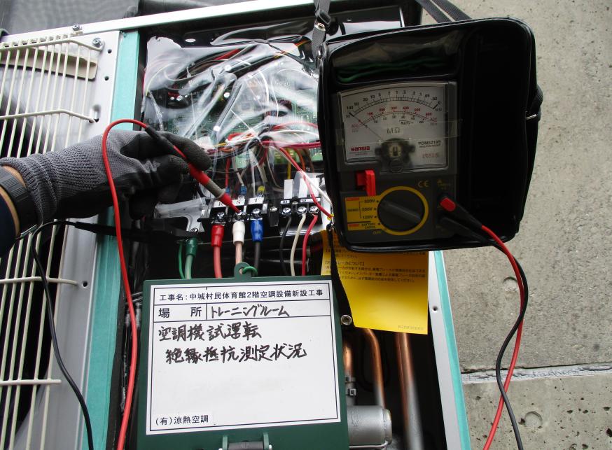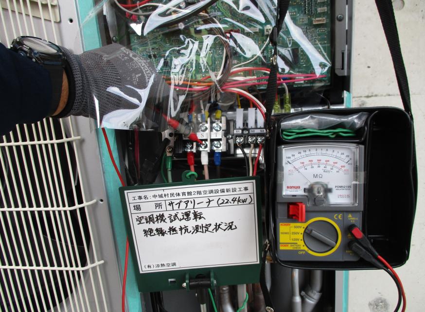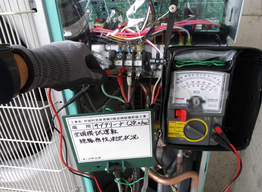 冷房能力28.0kw 試運転調整 絶縁抵抗測定状況